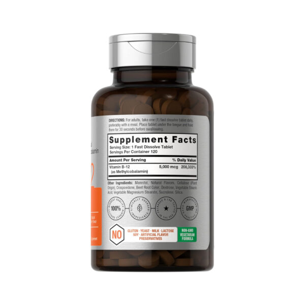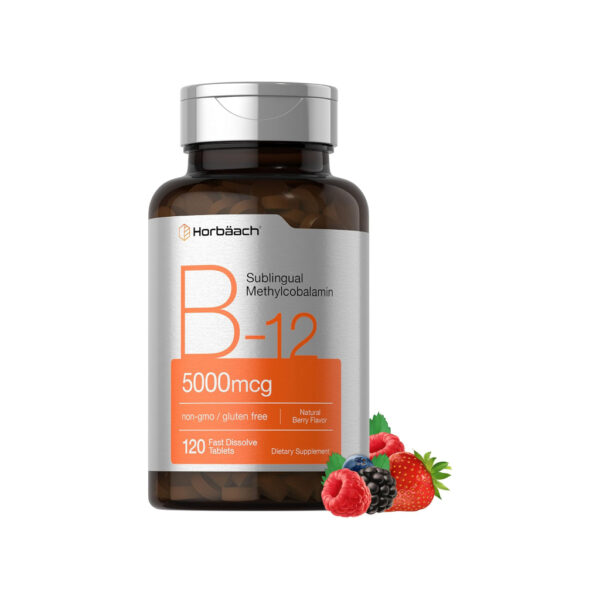 B12 Metilcobalamina sublingual | 5000 mcg | 120 tabletas de disolución rápida | Suplemento vegetariano, sin OMG y sin gluten | por Horbaach