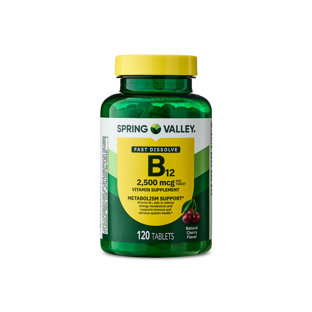 VITAMINA B12 QUICK DISSOLVE SPRING VALLEY (Disolución rápida) 2,500 mcg, sabor a cereza 120 tabletas