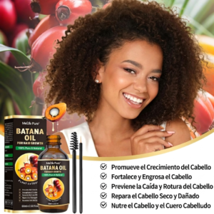 Repara el cabello seco dañado: los componentes nutritivos del aceite de Batana ayudan a reparar el cabello dañado. Rellena la estructura de la fibra del cabello, reduciendo la rotura y las puntas abiertas, y reparando el daño causado por el peinado con calor, tratamientos químicos o factores ambientales. Esto hace que el cabello sea más saludable, más fuerte y más fácil de manejar.