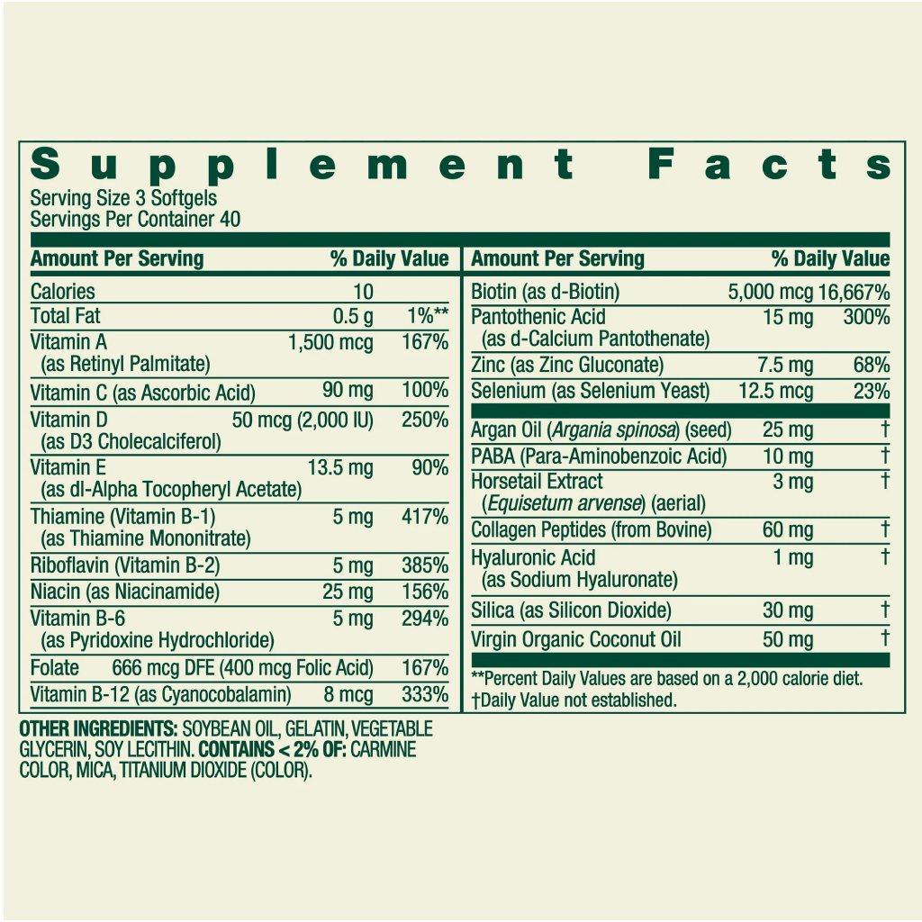HAIR, SKIN & NAILS WITH BIOTIN, HYDROLYZED COLLAGEN 120 SOFTGELS SPRING VALLEY