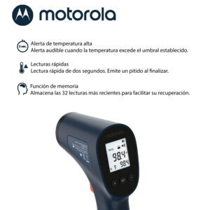 Termómetro sin tacto: el termómetro de frente sin contacto Motorola TE-94 es rápido y fácil de usar, proporcionando una medición de temperatura precisa, ultra higiénica y no intrusiva en todo momento. Este termómetro infrarrojo es ideal para toda la familia.