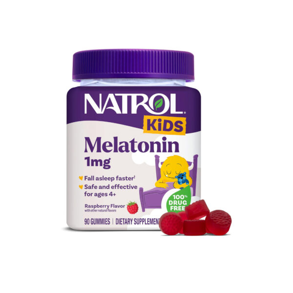 Gomitas de melatonina para niños de Natrol, una fórmula suave pero eficaz de melatonina de 1 mg en una gomita con sabor a bayas de gran sabor.