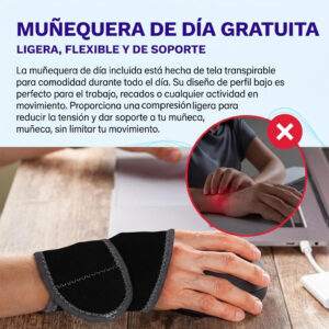 Soporte nocturno: especialmente diseñado para uso durante la noche para proporcionar un cómodo soporte de muñeca y estabilidad durante el sueño.