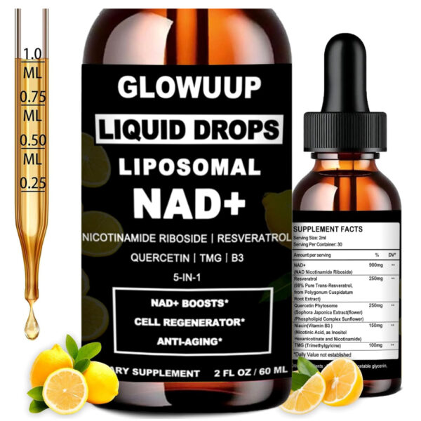 Suplementos NAD para mujeres y hombres, liposomal NAD nicotinamida ribósido resveratrol 900 mg con vitamina B3 quercetina TMG, resveratrol líquido NAD Plus Suplemento para la longevidad.