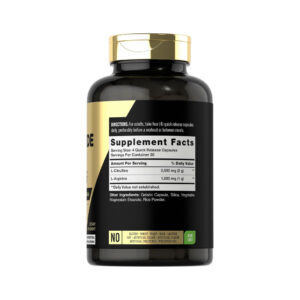 L-citrulina, L-arginina. Otros ingredientes: cápsula de gelatina, sílice, estearato de magnesio vegetal, polvo de arroz.
