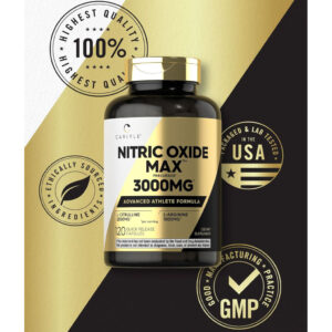 Carlyle Suplemento de óxido nítrico de 3000 mg | 120 cápsulas | con L-arginina y L-citrulina | para hombres y mujeres | Antes y después del entrenamiento | Sin OMG, sin gluten