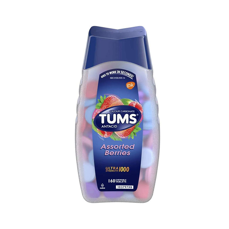 TUMS – Antiácido masticables para aliviar la acidez de estómago, ultra fuerte, en tabletas, baya, 160 unidades